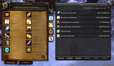 Модификация позволяющая сопоставить назначение клавишь с щелчком мыши (кликом) любые желаемые Вами действия, макросы и т.д или их последовательности! Очень удобен для жрецов, но и остальные классы могут найти вполне успешное применение данной модификации. Видео: Скриншоты: